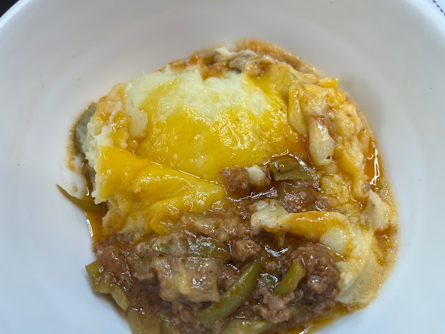 Shepherd's Pie is my favorite, go to, weeknight meal. It is made with things I always have on hand like, tomato soup, green beans, hamburger, mashed potatoes and cheddar cheese. It is easy and quick and can be made within 15 minutes if I have left over